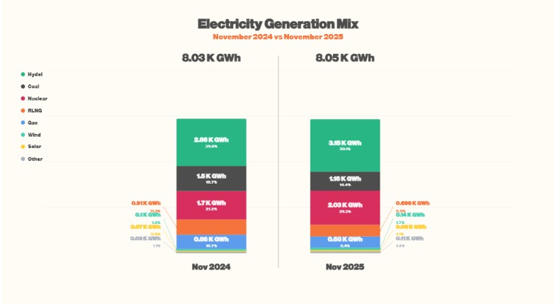 The November generation mix provides important context. Hydel accounted for close to 40 percent of total generation, while nuclear output remained strong. Gas and RLNG were used less than in earlier months.