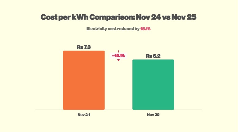 The change in the fuel mix brought the average cost of electricity down. In November, the average cost was around 6.2 rupees per unit, compared to roughly 7.3 rupees per unit in November last year.
